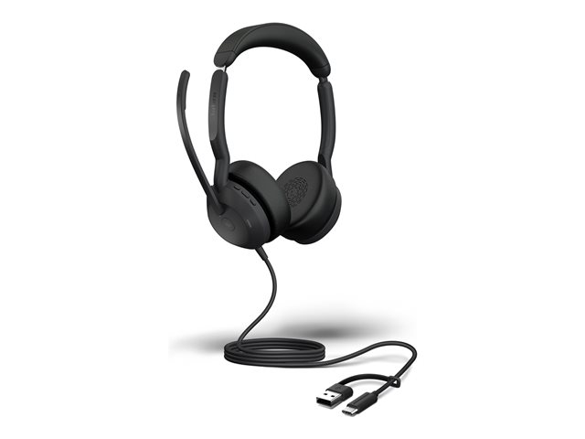 Jabra Evolve2 50 MS Stereo - Headset - på øret - trådløs, kablet - aktiv støjfjerning - USB-C, USB-A - Certified for Microsoft Teams
