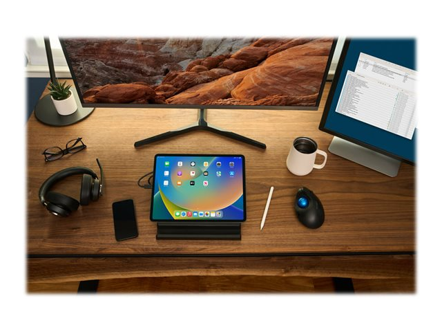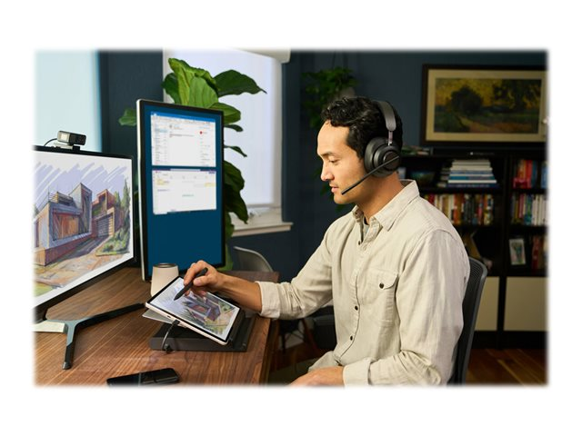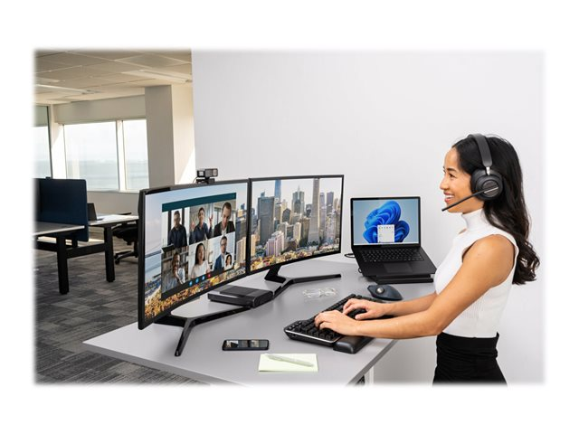 Tailored to meet the demanding needs of today's office and remote working environments, Kensington's H3000 Bluetooth headset delivers an ergonomic over-ear design for an immersive and focused experience, the wireless freedom to roam, and AI-powered environmental noise-canceling technology to suppress distracting background sounds. Cooling-gel infused memory foam earpads with heat transferring fabric provide all-day comfort, LED indicators confirm status and reduce distractions, music controls with call detection technology simplify transitions, and sidetone provides a better call experience. Dynamic 40mm neodymium drivers deliver a superior audio experience for calls and music, and the pro battery with Rapid Charge Technology keeps the headset functioning while it charges.