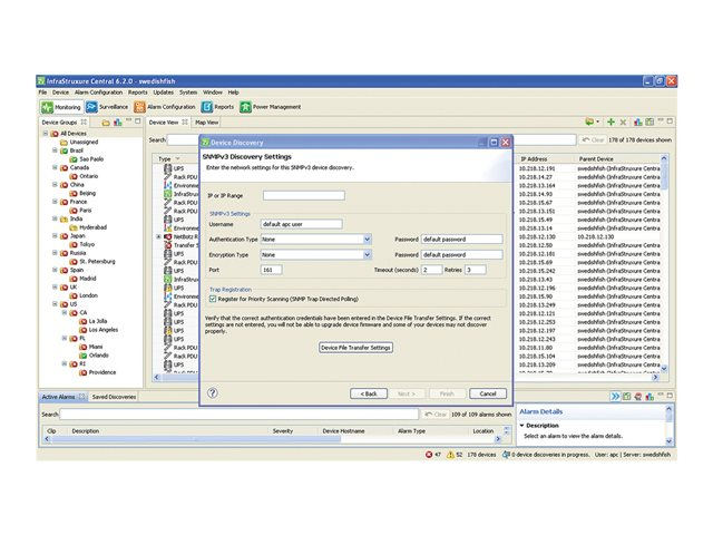 InfraStruXure Central provides an efficient, productive way for organizations to manage their company-wide NetBotz appliances. The centralized server allows the user to mass configure thresholds and firmware updates, and to deploy, view and graph data collected by NetBotz monitoring appliances. InfraStruXure Central's security and environmental monitoring solution can scale across large and diverse organizations.