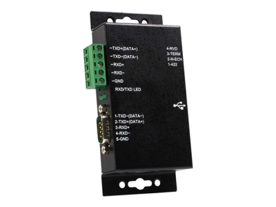 Add an R422/485 serial port to your laptop or desktop computer through USB. The ICUSB422IS 1 Port Metal Industrial USB to RS422/RS485 Serial Adapter w/ Isolation connects to a computer using USB and allows you to connect any RS-422 or RS-485 serial device via the provided DB9 port or hard-wired to the terminal block. The USB to serial adapter features circuit isolation to ensure that sensitive controls and devices will not be damaged while connected, making it a viable solution for connecting costly industrial serial devices. The RS422/485 Converter receives full power via the host USB connection, and provides power to the attached serial device without requiring an external power adapter. Designed to provide a durable serial solution, the USB to RS422/485 Converter is ruggedly constructed and can be mounted nearly anywhere.