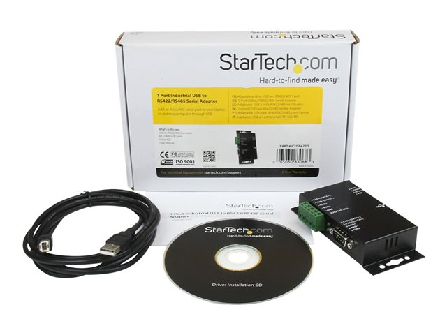 StarTech.com 1 Port Metal Industrial USB to RS422/RS485 Serial Adapter w/ Isolation (ICUSB422IS) - Seriel adapter - USB - RS-422, RS-485 - sort