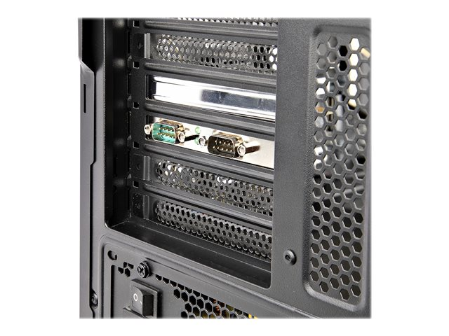 Add serial communication support to your desktop computer or Small Form Factor (SFF) system, using this two-port serial card. RS-232 (DB9) support enables control and communication with a serial peripheral device.