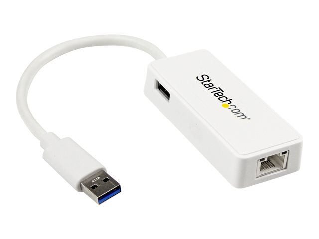 StarTech.com USB 3.0 to Gigabit Ethernet Adapter NIC w/ USB Port (White) - USB 3.0 NIC - 10/100/1000 Mbps USB 3.0 LAN Adapter (USB31000SPTW) - Netværksadapter - USB 3.0 - Gigabit Ethernet - hvid