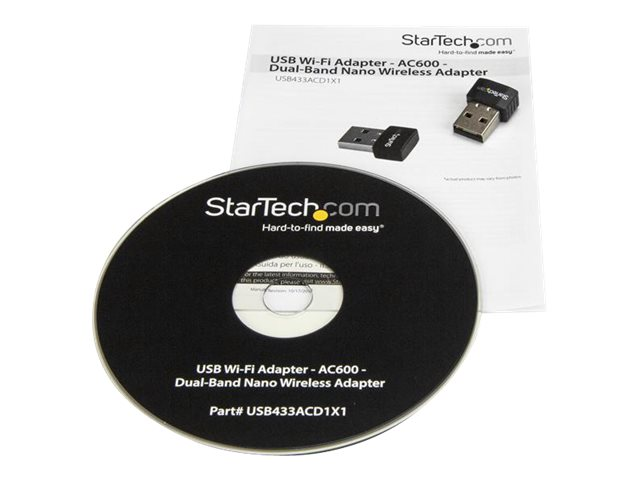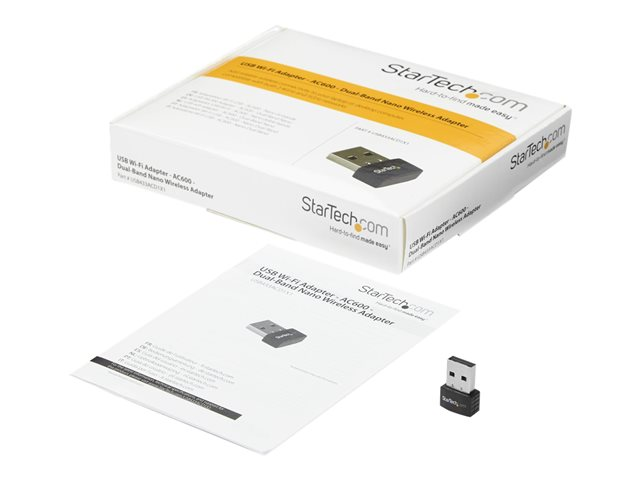 StarTech.com Wireless USB WiFi Adapter - Dual Band AC600 Wireless Dongle - 2.4GHz / 5GHz - 802.11ac Wi-Fi Laptop Adapter (USB433ACD1X1) - Netværksadapter - USB 2.0 - Wi-Fi 5 - sort USB433ACD1X1