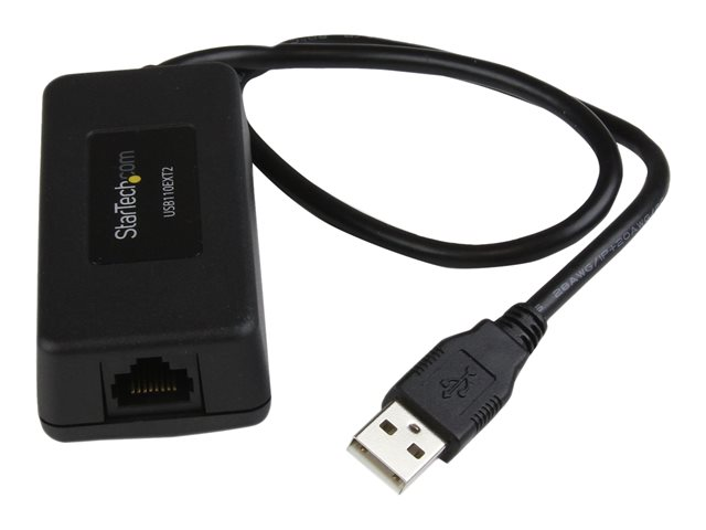 Extend a USB 1.1 device up to 40m (131ft) away from a computer, over a Cat5/Cat6 cable. The USB110EXT2 USB 1.1 Extender enables you to extend a USB 1.1 connection over distances of up to 40-meters (131-feet) using standard Cat5 or Cat6 UTP cabling, bypassing the normal limitation of 5m (15ft) for USB 1.1 devices and allows for the host computer system to be safely stored in a remote location.
