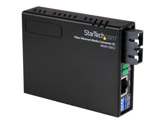 Convert an RJ-45 Ethernet 10/100 network connection to SC MultiMode fiber. The MCM110SC2EU 10/100 Multi Mode Fiber Ethernet Media Converter (SC, 2 km) creates a cost-effective Ethernet-fiber link, transparently converting to/from 10Base-T or 100Base-Tx Ethernet signals and 100Base-Fx optical signals, to extend an Ethernet network connection over an SC-terminated multimode fiber backbone.