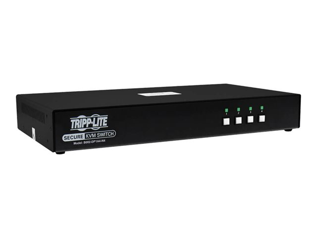 Oplev Tripp Lite Secure KVM Switch, en 4-Port, Single Head, DisplayPort til DisplayPort-løsning designet til at forbedre din datasikkerhed og skærmkvalitet. Denne KVM-switch understøtter 4K-opløsning og sikrer, at alle detaljer er skarpe og klare, uanset om du arbejder på dataintensive programmer eller nyder high-definition-medier. Med sine robuste tilslutningsmuligheder, herunder DisplayPort, USB 2.0 og lydindgange og -udgange, giver den problemfri integration i din eksisterende opsætning, så du nemt kan skifte mellem enheder.
