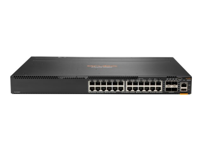 | Interface | 24 x 10/100/1000 Base-T RJ-45 4 x 1 Gbit/10 Gbit/25 Gbit/50 Gbit SFP56 uplink/stacking 1 x USB-C konsol 1 x administration RJ-45 ud af bånd-netværksadministration 1 x USB Type A vært |