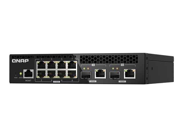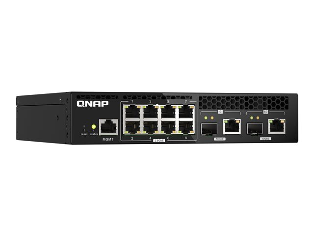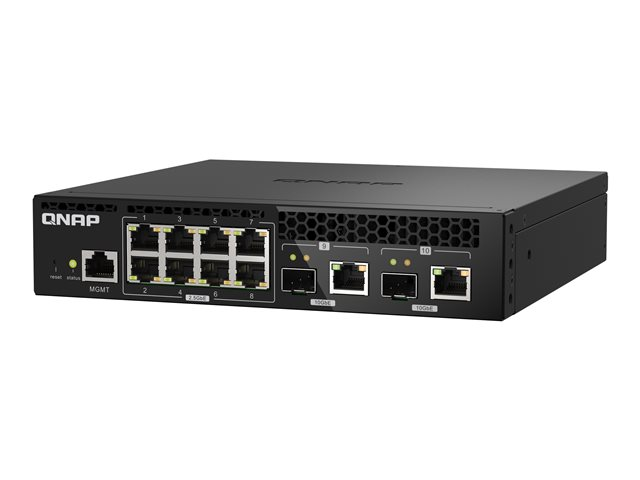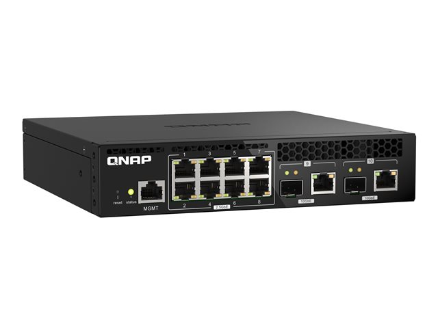 The QSW-M2108R-2C is a Layer 2 Web Managed Switch with two 10GbE SFP+/RJ45 combo ports and eight 2.5 Gigabit ports. Supporting Layer 2 switching and network management via a user-friendly web user interface, the QSW-M2108R-2C offers flexible deployment in hybrid high-speed network environments and provides an entry-level network management solution. With a half-width design, two QSW-M2108R-2C can be installed in a 1U rack space for space-saving. The QSW-M2108R-2C is compatible with 10GbE and NBASE-T technologies, supporting up to five speeds (10G / 5G / 2.5G / 1G / 100M) to provide higher transmission speeds when using existing Cat 5e and 6a cables.