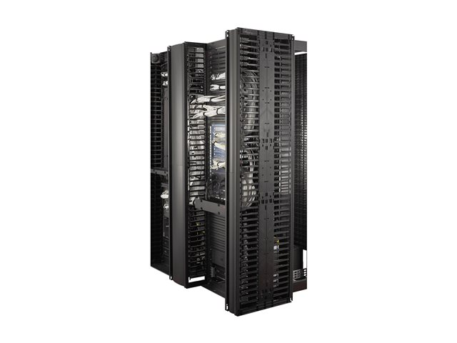 This 6" wide, high capacity vertical cable manager for 2 and 4 post open frame racks features a double-sided cable channel with multiple internal cable tie-off locations and smooth plastic fingers at 1 U increments for organized patching applications.