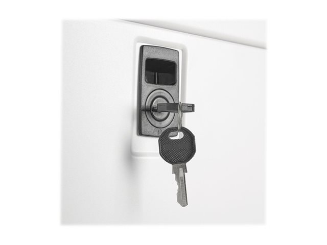 Dette kabinet er fremstillet af stål med pulverlakeret overflade og har funktioner såsom låsemekanismer for sikkerhed, nivelleringsben for stabilitet på ujævne overflader og hjul for mobilitet. Pakken indeholder alle nødvendige komponenter, herunder nøgler, sidepaneler, burmøtrikker og låse, hvilket sikrer en enkel og effektiv installation. Eaton SmartRack-kabinettet overholder standarderne og giver ro i sindet for brugere, der ønsker at optimere deres serveropbevaringsløsning.