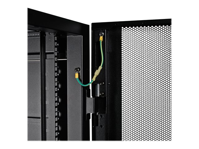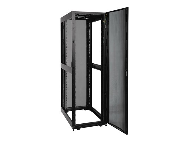 42U Rack Enclosure Server Cabinet fra Eaton Tripp Lite-serien er designet til effektiv organisering og sikker opbevaring af dit elektroniske udstyr. Med en robust konstruktion, der kan understøtte en vægtgrænse på 1360,8 kg, er dette skab ideelt til både kommercielle og industrielle miljøer. De aflåselige for- og bagdøre sikrer, at dit værdifulde udstyr er beskyttet mod uautoriseret adgang. Dette rackskab overholder vigtige standarder som EIA-310-E, NOM, UL 60950 og RoHS, hvilket gør det til et pålideligt valg til forskellige anvendelser.