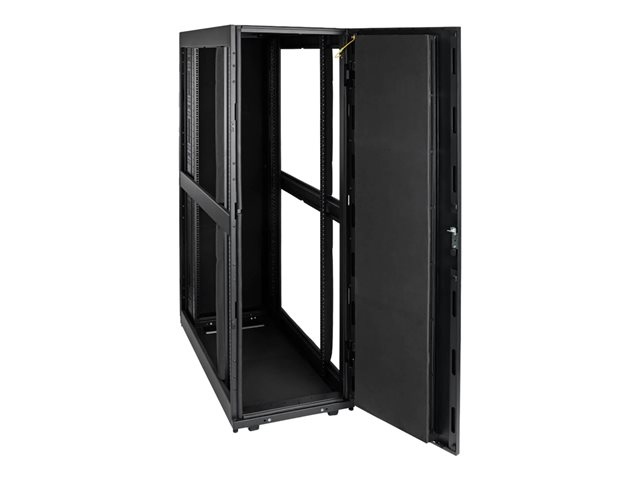 Eaton Tripp Lite Series 42U Rack Enclosure Server Cabinet er designet til at optimere ydeevnen og samtidig opretholde et stille miljø, hvilket gør det velegnet til ethvert serverrum eller datacenter. Skabet er konstrueret af kraftigt stål, der kan modstå daglig brug og sikre en lang holdbarhed. Det har lyddæmpende paneler for at minimere støj, hvilket giver et mere behageligt arbejdsområde. Låsemekanismen giver sikkerhed for værdifuldt udstyr, mens justerbare lodrette monteringsskinner passer til forskellige hardwarekonfigurationer.