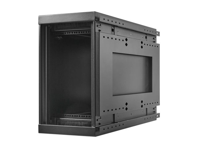 Eaton Tripp Lite Series SmartRack vægmonteret mini-rackkabinet 6U lavprofil sidemonteret sort er en effektiv og sikker opbevaringsløsning til standard 19" udstyr. Dette rack er fremstillet af kraftigt stål og har lang holdbarhed samt låsbare og ventilerede døre, der sikrer, at udstyret forbliver beskyttet og korrekt ventileret. Enheden leveres med vigtigt tilbehør, herunder nøgler, M6 burmøtrikker, skruer, skålepakninger og en aftagelig monteringsplade, hvilket gør installationen enkel og praktisk. Dette 6U mini-rack er designet til optimal pladsudnyttelse, kan monteres på væggen og udnytter pladsen effektivt, hvilket gør det til et ideelt valg til miljøer med begrænset gulvareal. Derudover fremmer de indbyggede ventilatorer en effektiv luftstrøm, hvilket yderligere forbedrer køleeffekten for det installerede udstyr. Med en kapacitet på op til 113 kg er dette kompakte rack velegnet til at håndtere forskellige konfigurationer, der imødekommer dine behov.