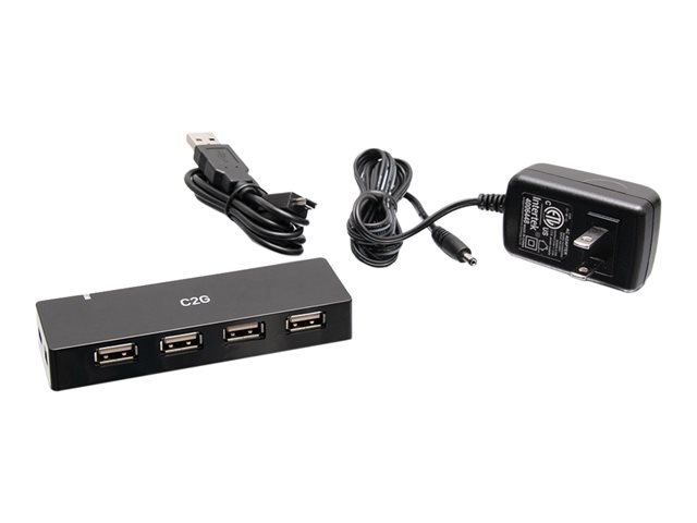C2G 4-Port USB-A Hub with 5V 2A Power Supply - Hub - 4 x USB 2.0 - desktop