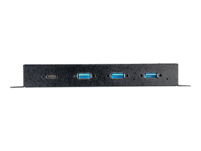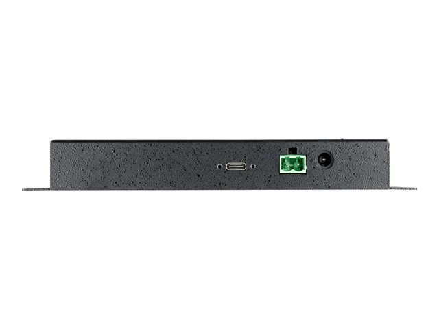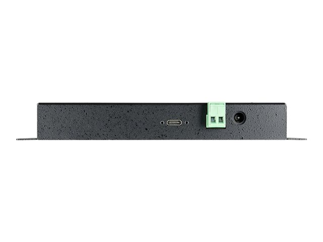 This 4-port industrial USB hub enables you to connect four SuperSpeed USB 3.2 Gen 2 (10 Gbps) peripherals to your USB-A or USB-C computer. The hub features three USB-A and one USB-C peripheral ports, each with a screw-lock connector, and a metal industrial housing ideal for commercial environments.