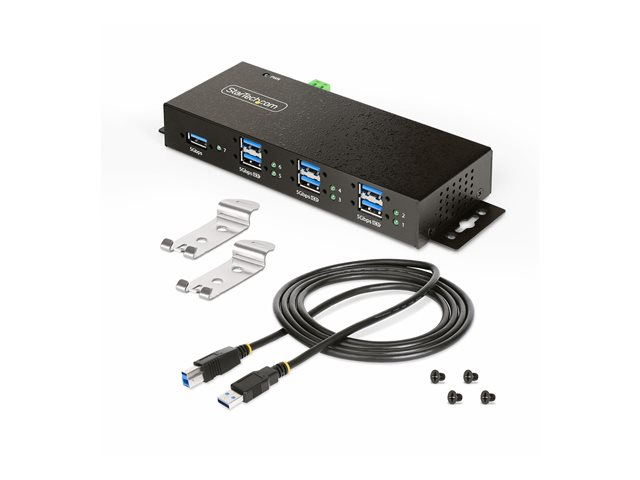 StarTech.com 7-Port Managed USB Hub with 7x USB-A, Heavy Duty with Metal Industrial Housing, ESD & Surge Protection, Wall/Desk/Din-Rail Mountable, USB 3.0/3.1/3.2 Gen 1 5Gbps - Hub - 6 x USB 3.2 Gen 2 + 1 x USB 3.2 Gen 1 - væg-monterbar, desktop, DIN monterbar på skinne - TAA-kompatibel