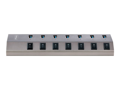 The 7-Port Self-Powered USB-C Hub from StarTech.com offers functionality and an efficient way to expand desktop or laptop connectivity. Featuring seven USB 3.2 Gen 1 ports, this hub allows for data transfer speeds up to 5 Gbps. The individual on/off switches provide control, enabling power management for each connected device. Its self-powered mode and external power adapter ensure reliable performance even with multiple devices connected. With a compact aluminum housing, it fits into any workspace while maintaining durability.