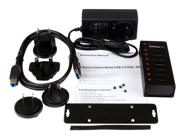 StarTech.com 7 Port USB 3.0 Hub (5 Gbps) - Metal Enclosure - Desktop or Wall Mountable - Rugged & industrial Powered USB Expander and Splitter Hub (ST7300U3M) - Hub - 7 x SuperSpeed USB 3.0 - desktop, væg-monterbar - for P/N: BNDTBUSB3142, PEXUS313AC2V, PEXUSB311A1E, PEXUSB312A2, PEXUSB314A2V, PEXUSB314A2V2