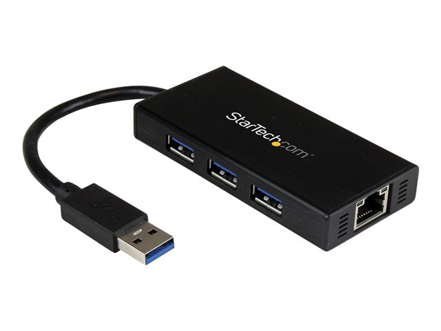 StarTech.com USB 3.0 Hub with Gigabit Ethernet Adapter - 3 Port - NIC - USB Network / LAN Adapter - Windows & Mac Compatible (ST3300GU3B) - Hub - 3 x SuperSpeed USB 3.0 + 1 x 10/100/1000 - desktop - for P/N: PEXUSB3S2EI, PEXUSB3S42, PEXUSB3S7, SVA5H2NEUA