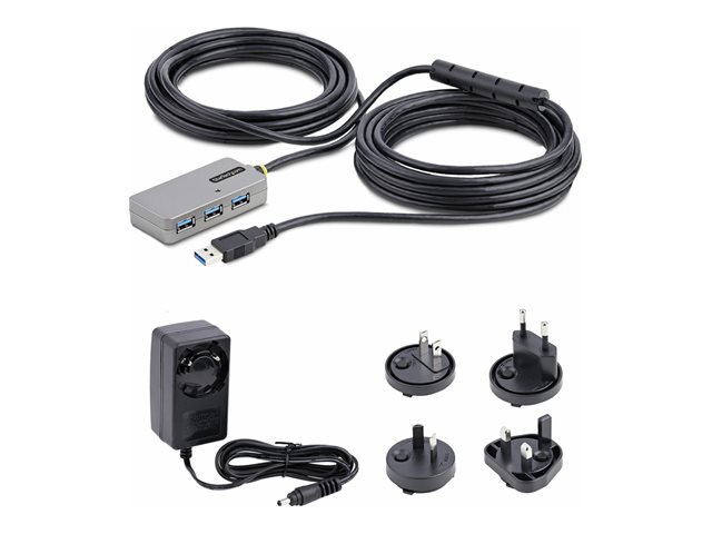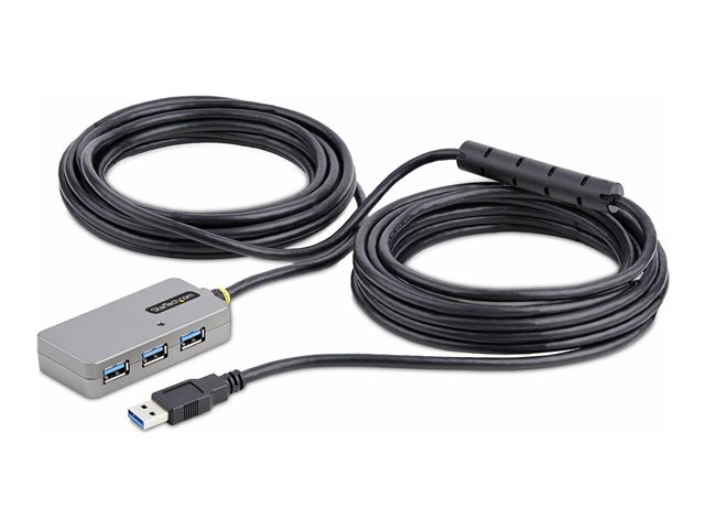 StarTech.com USB Extender Hub, 10m USB 3.0 Extension Cable with 4-Port USB Hub, Active/Bus Powered USB Repeater Cable, Optional 20W Power Supply Included - USB-A Hub w/ ESD Protection (U01043-USB-EXTENDER) - Hub - 4 x USB 3.2 Gen 1 - desktop