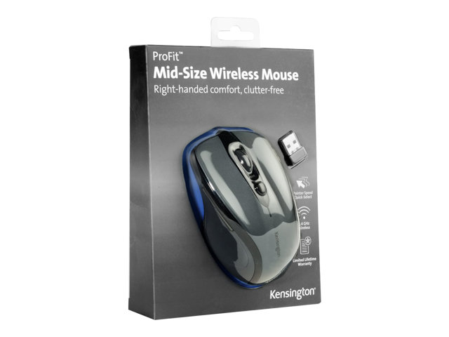 Kensington Pro Fit Mid-Size - Mus - højrehåndet - optisk - 5 knapper - trådløs - 2.4 GHz - trådløs modtager (USB) - grafitgrå K72423WW