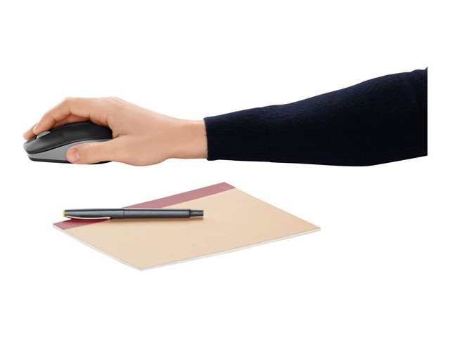 Logitech M190 is a full-size wireless mouse with a comfortable contoured design that follows the natural curve of medium to large hands.