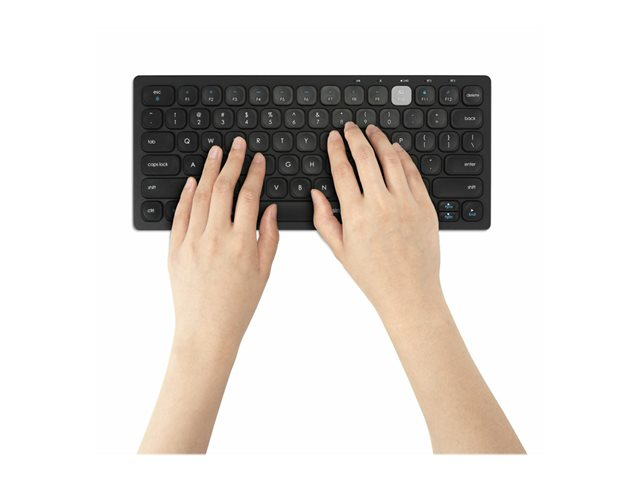 The Multi-Device Dual Wireless Compact Keyboard lets you connect and switch between up to three devices at a time (computer, tablet, or phone), using Bluetooth or 2.4GHz wireless with 128-bit AES encryption. Smooth, responsive scissor keys include multimedia hot keys. Windows, macOS, iOS, and Chrome OS compatible. Low battery indicator, so you're never caught off guard.