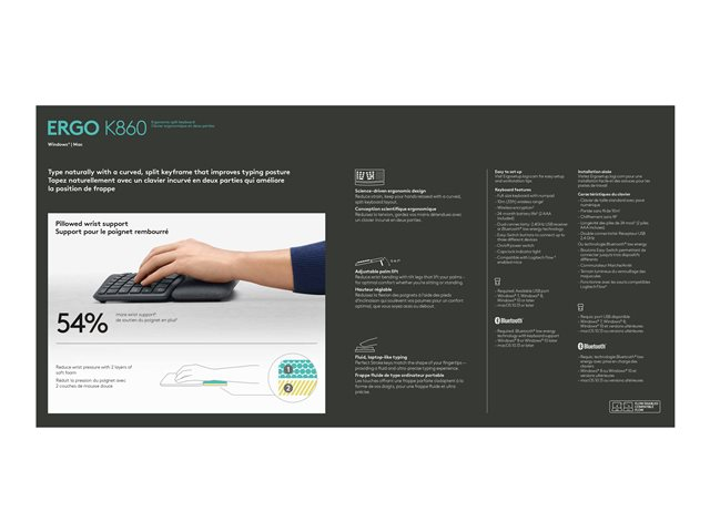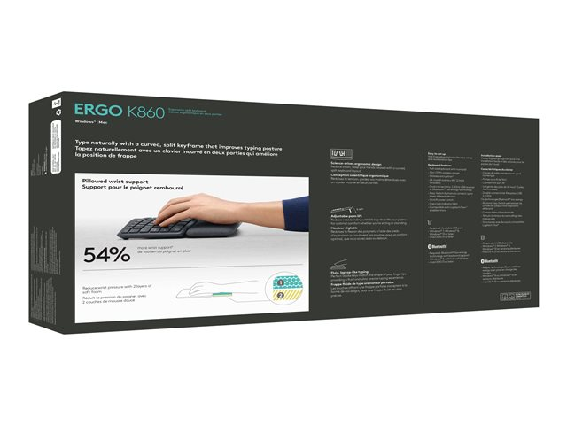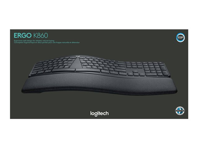 ERGO K860, et opdelt ergonomisk tastatur designet til bedre skrivestilling, mindre belastning og mere støtte.