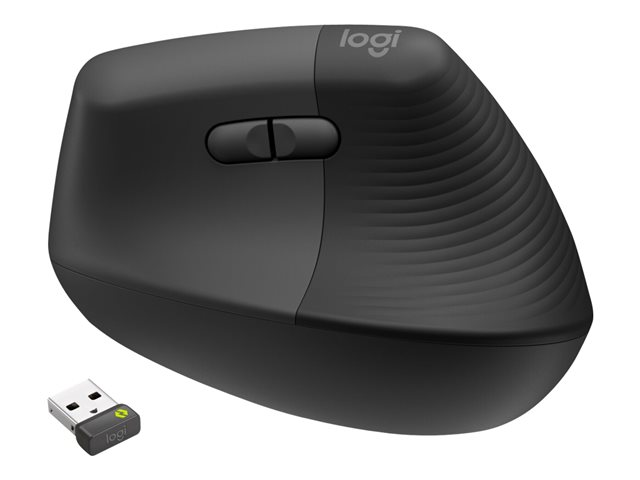 Logitech Lift for Business - Lodret mus - ergonomisk - venstrehåndet - 6 knapper - trådløs - Bluetooth, 2.4 GHz - Logitech Logi Bolt USB-modtager - grafit 910-006495