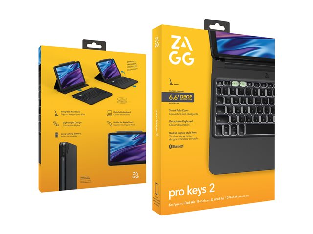 ZAGG Pro Keys 2 - Tastatur og folio-kasse (folio-dække) - bagbelyst - trådløs - Bluetooth - QWERTY - Nordisk - for Apple 11-inch iPad Air (M2, M3) 103414646