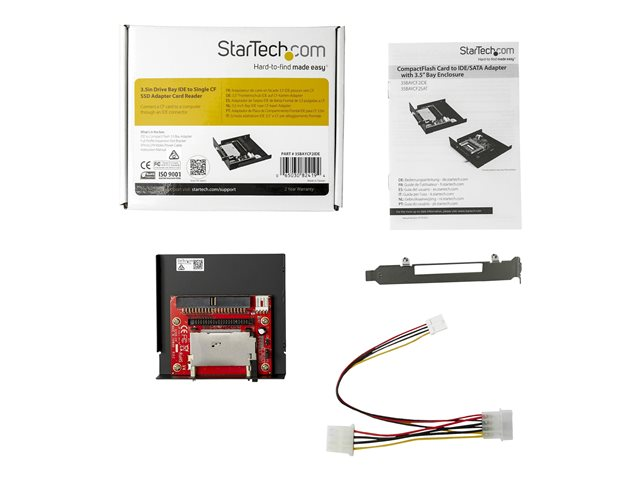 Connect a CF card to a computer through an IDE connector. This Compact Flash IDE adapter is a perfect solution for accessing CompactFlash (CF I, CF II) and IBM Micro Drive media, allowing you to access the flash/micro drive media as if it were an IDE hard drive. The CF/IDE adapter can be installed in the computer case through simple mounting in an available 3.5in drive bay, for connection to the computer IDE bus through either a 40 or 44-pin connection.