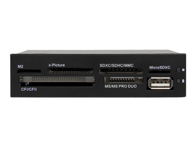 Suitable for quickly accessing memory cards from virtually any portable media device (e.g. digital cameras, MP3 players, etc.), this versatile media card reader supports 22 of the most popular card types, including: Compact Flash (CF type I), Secure Digital (SD/miniSD/microSD/SDHC/SDXC), MultiMediaCard (MMC/RS-MMC/HS-MMC/MMCmobile/MMCplus/MMCmicro/HC-MMC), MemoryStick (MS/MS Duo/HS-MS/MS PRO/MS PRO Duo/MS PRO-HG Duo/MS-ROM/M2), and xD Picture cards, this reader is ready to handle the memory cards from virtually any portable device from cameras to music players.