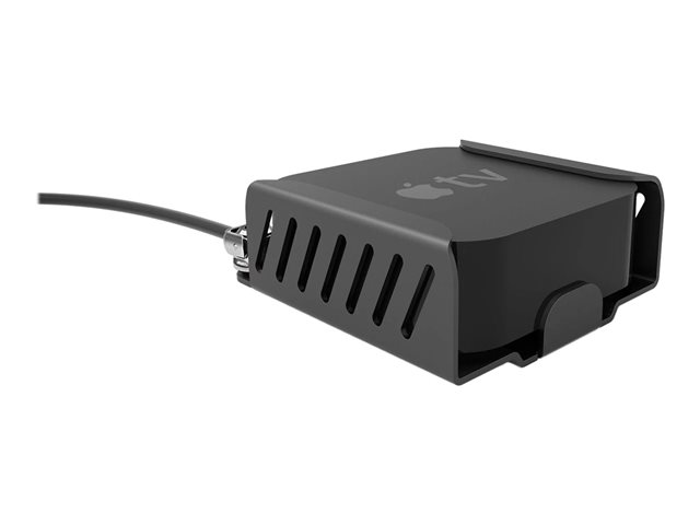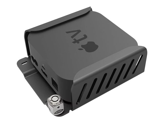 The Apple TV Lock and Mount security bracket can be fixed to any flat surface. You can safely screw the Mount to a wall, desk, underside of a table, cabinet, and even the back of a monitor. Once the bracket is secured all you need to do is slide your Apple TV into the Mount and connect the lock. The ventilated design protects your device against overheating and wireless signal loss while giving you total access to the power button, USB, HDMI and Ethernet ports to ensure complete user experience.