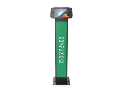 Our BrandMe floor stand allows you to utilize a panel for branding, call to action or custom design to bring attention to your interactive display or kiosk. The tilting mount allows the iPad enclosure to be set in either portrait or landscape mode and the stand base offers additional security features, securing the power source and bolting the unit to the floor.