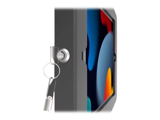 Mount any iPad to any pole or rail up to 1.50"Ø. The Space iPad Enclosure features rounded edges and open corners for improved ventilation and access to buttons and inputs. The unique design enables continuous iPad charging and peripheral cables to be plugged in while in the Enclosure, and the VESA Rail Mount provides screen swivel and flip.
