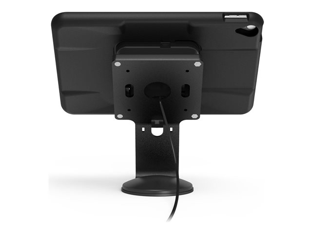 Allows data and power transfer through USB-C interface, locking mechanism for tablet security, "lift to release" mechanism, integrated kickstand on tablet side, powder-coated metal for extra durability and cable-free charging.
