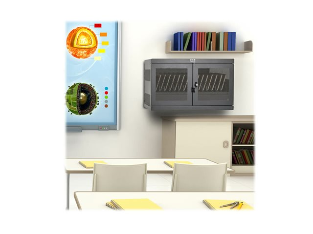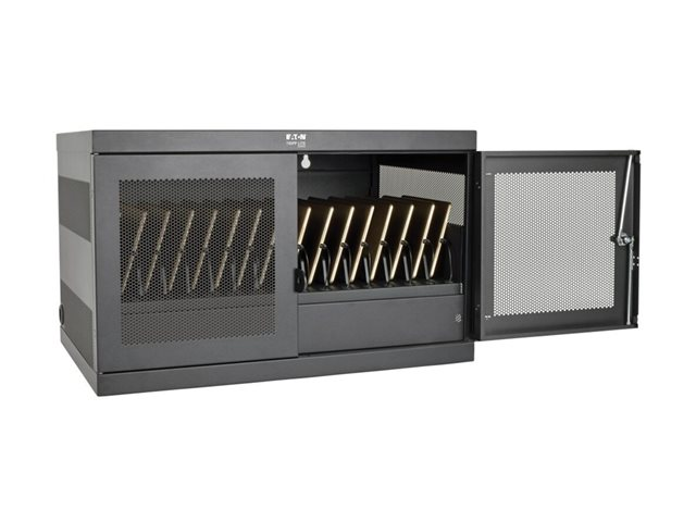 Oplev Eaton Tripp Lite Series 16-Device USB Charging Station Cabinet, en omfattende opladningsløsning designet til iPads, Android-tablets og andre USB-enheder. Dette skabssystem er ikke kun en oplader til flere enheder, men også en sikker opbevaringsløsning med en robust stålkonstruktion med en sort pulverlakeret finish for holdbarhed. Den har 16 USB 2.0 A-opladningsporte med hurtigopladning, overopladning og overstrømsbeskyttelse for at sikre, at dine enheder oplades effektivt og sikkert.
