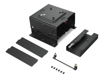 The Lenovo ThinkStation Under Desk Mount II provides a solution for organizing workspaces by allowing for the placement of equipment under the desk. This mounting kit helps in saving desk space while keeping work areas neat and streamlined. Designed for under-desk installation, it minimizes clutter and improves accessibility to devices.