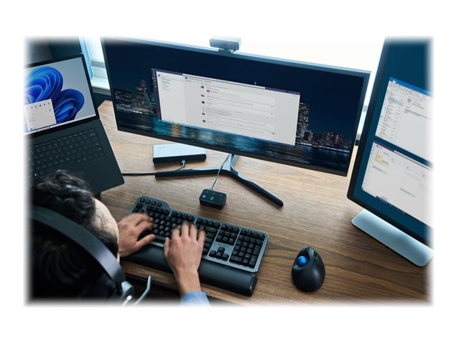 Kensington's Universal 3-in-1 Pro Audio Headset Switch allows professionals to use their favorite wired or wireless headset (Bluetooth, USB-C, USB-A, or 3.5 mm) as they switch between different devices (laptops, phones, and tablets). Accommodates up to three different audio sources, automatically remembers previously paired devices, eliminates the need for multiple headsets, and works with Microsoft Teams, Google Meet, Zoom, WebEx, and more.