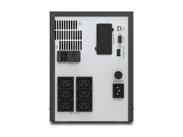 The APC Easy UPS SMV2000CAI is a robust uninterruptible power supply designed to protect your critical equipment from power outages and fluctuations. Featuring line interactive UPS technology, it provides a stable power supply, ensuring your devices remain operational during disruptions. With a quick recharge time of only 4 hours, its lead acid batteries are ready to deliver protection when you need it most. This UPS is equipped with both USB and RS-232 interfaces, offering versatile management options for a variety of IT environments. It boasts a power capacity of 1400 W, capable of supporting a wide range of devices. Additionally, its design is suited for challenging environmental conditions, operating reliably across a broad temperature and humidity spectrum. The APC Easy UPS SMV2000CAI is an essential solution for maintaining productivity and protecting your investments in technology.