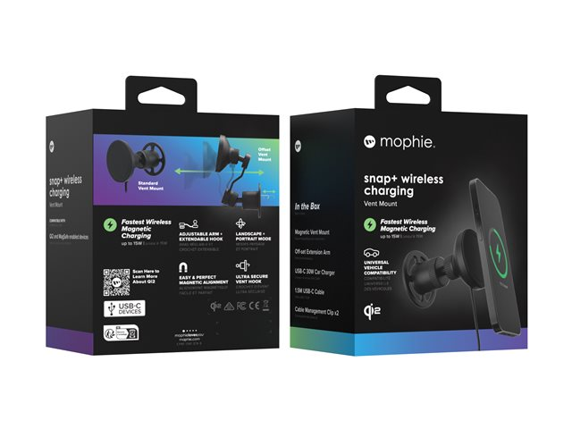 mophie snap+ - Trådløs opladerholder til bil - magnetisk, ventilationsmontering + AC-strømadapter - 15 Watt 401313369